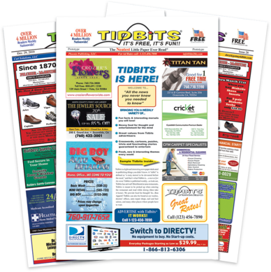 Advertising in Tidbits is effective, affordable and easy! Call or email us and we will put an advertising package together just for you. Start your new advertising campaign today with Tidbits!